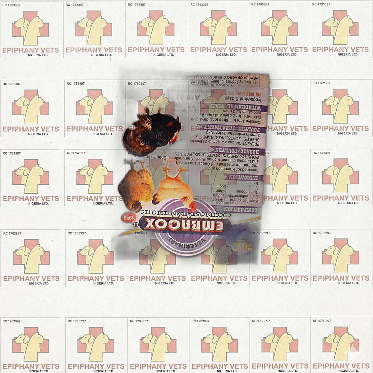 Embacox 50g WSP SKU: MED-EMB-50 ( reviews) ₦900.00 50g Sachet. Coccidiostat/Antibiotic, Treatment for prevention and control of caecal Coccidiosis and bacterial diseases. Embacox Coccidiostat (50g) In Stock 150 items available Category: Medications Brand: Dee Zog Quantity: Add to Cart