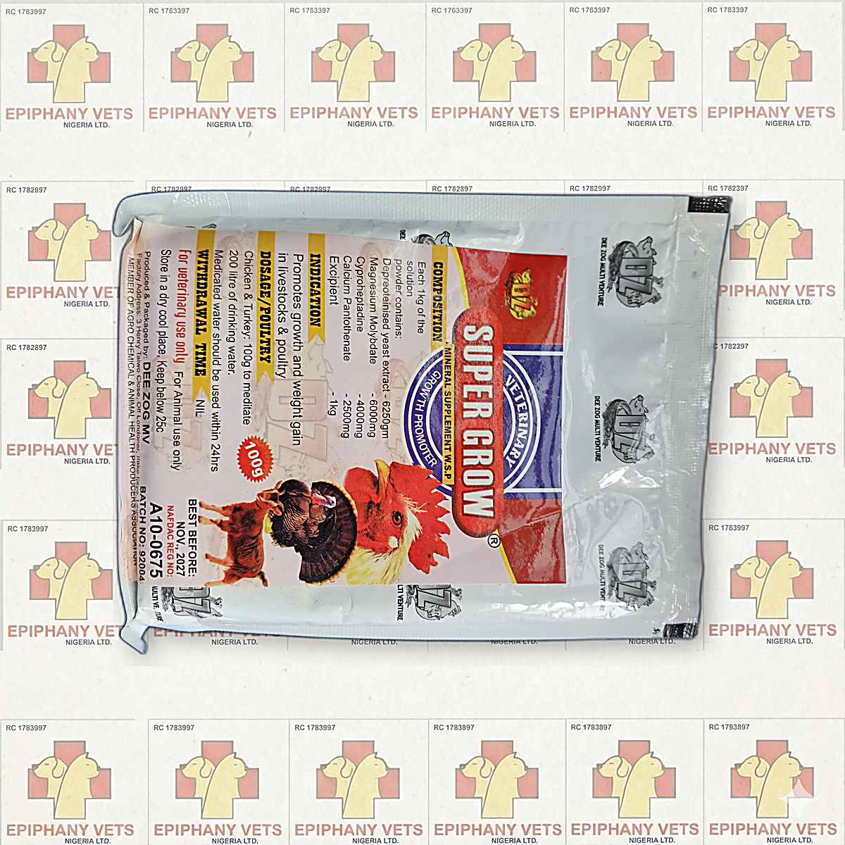 Super Grow 100g SKU: SUP-OZ-SGRO ( reviews) ₦1090.00 100g Sachet. Mineral supplement W.S.P. Promotes growth and weight gain in livestock and poultry. Contains Calcium, Magnesium, and essential minerals. Super Grow Mineral Powder (100g) In Stock 150 items available Category: Supplements Brand: Dee Zog Quantity: Add to Cart
